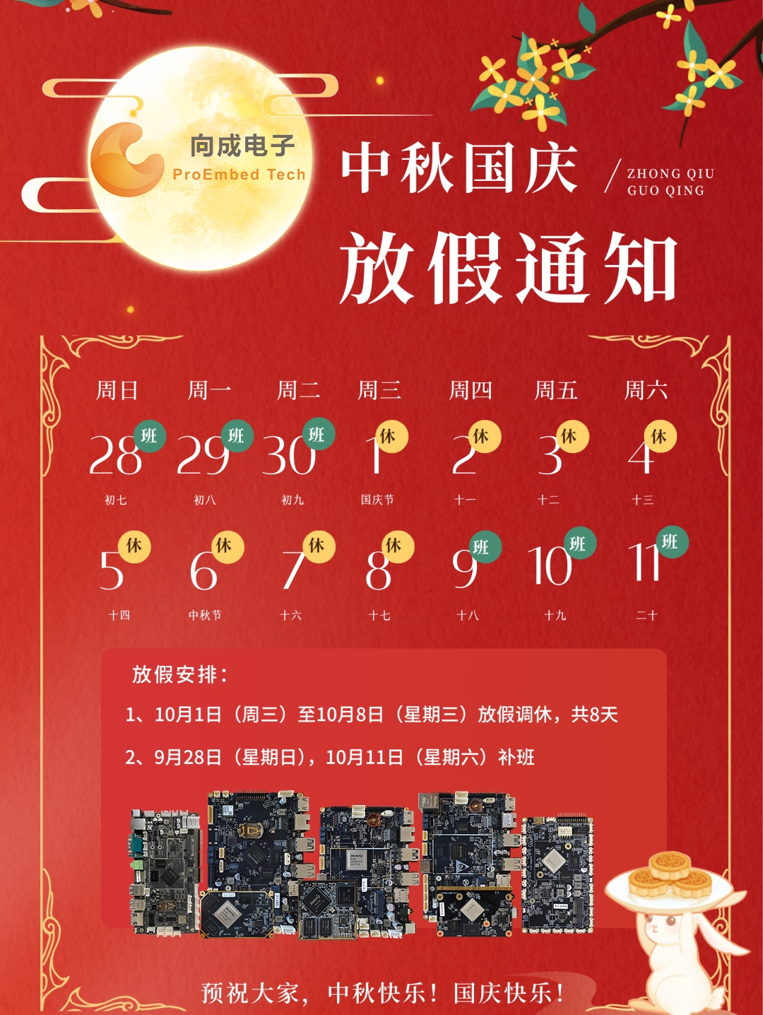 向成電子XC3576H工控主板,它不僅是硬件的升級,更是戶外無人車實現全方位能力躍升的關鍵。向成電子2025年國慶節(jié)及中秋節(jié)放假通知